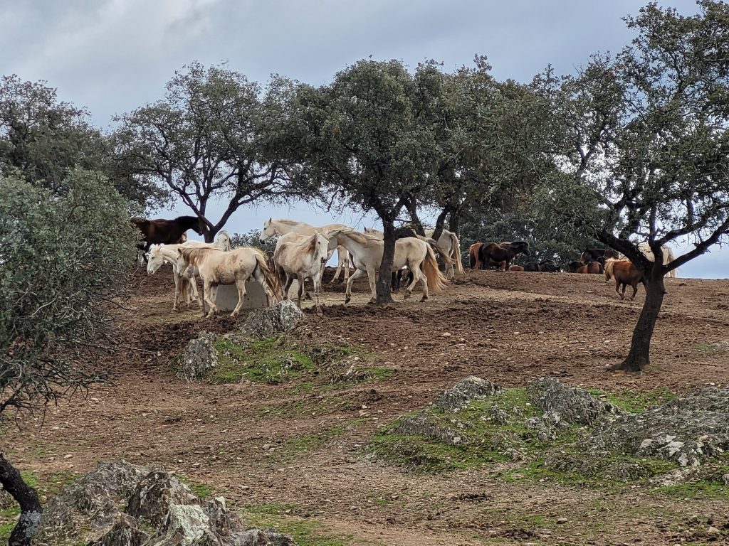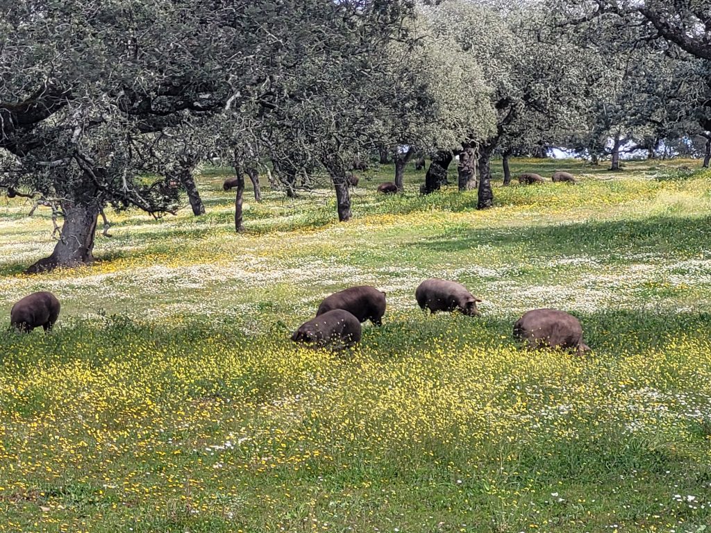 Zum Glück haben die iberischen Schweine nichts mit Wildschweinen gemeinsam und bleiben friedlich, selbst wenn man ihnen auf dem camino oft sehr nahe kommt.