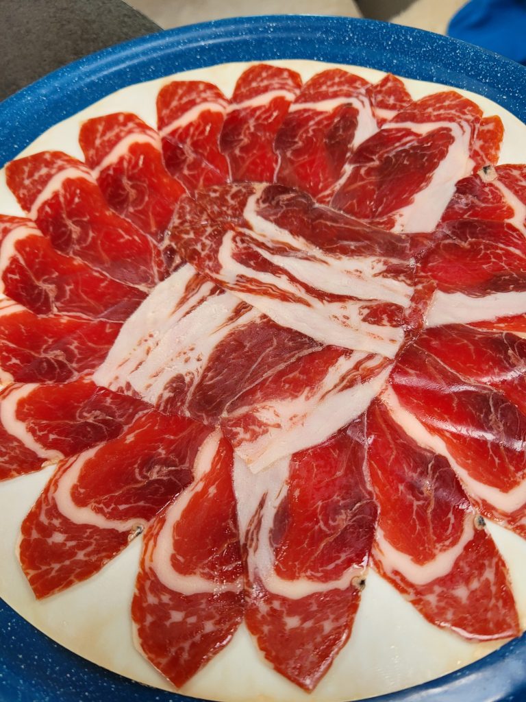 Da es in ALMADÈN eine „Schinkenfabrik“ gibt, haben wir heute früh verschiedene Sorten des weltberühmten iberischen Serrano-Schinkens gekauft, darunter natürlich auch den Jamon serrano bellota. Bei dieser Sorte leben die Schweine das ganze Jahr hindurch in den Eichenhainen und ernähren sich hauptsächlich von Eicheln.