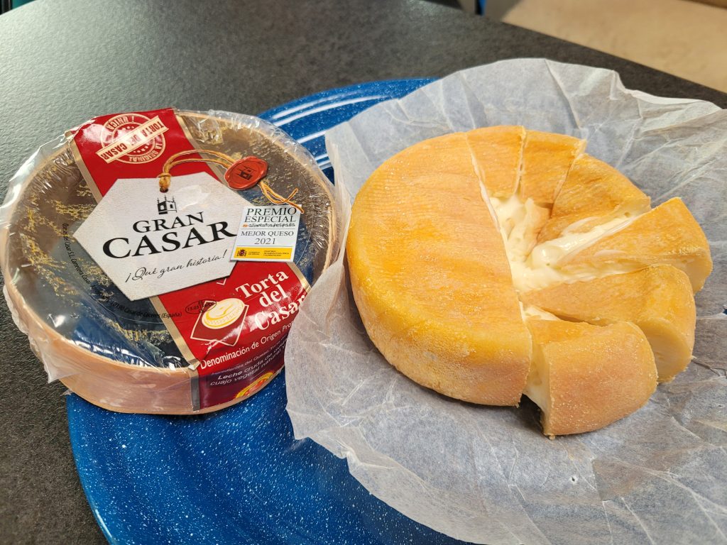 Aus CASAR, meinem heutigen Ziel, kommt ein einzigartiger Käse: Torta del Casar. Es handelt sich um eine Art Camembert aus Schafmilch. Unter einer harten Schale verbirgt sich ein cremig-weicher würziger Kern. Wir haben ihn probiert, aber für weitere Einkäufe ist er uns einfach zu teuer.