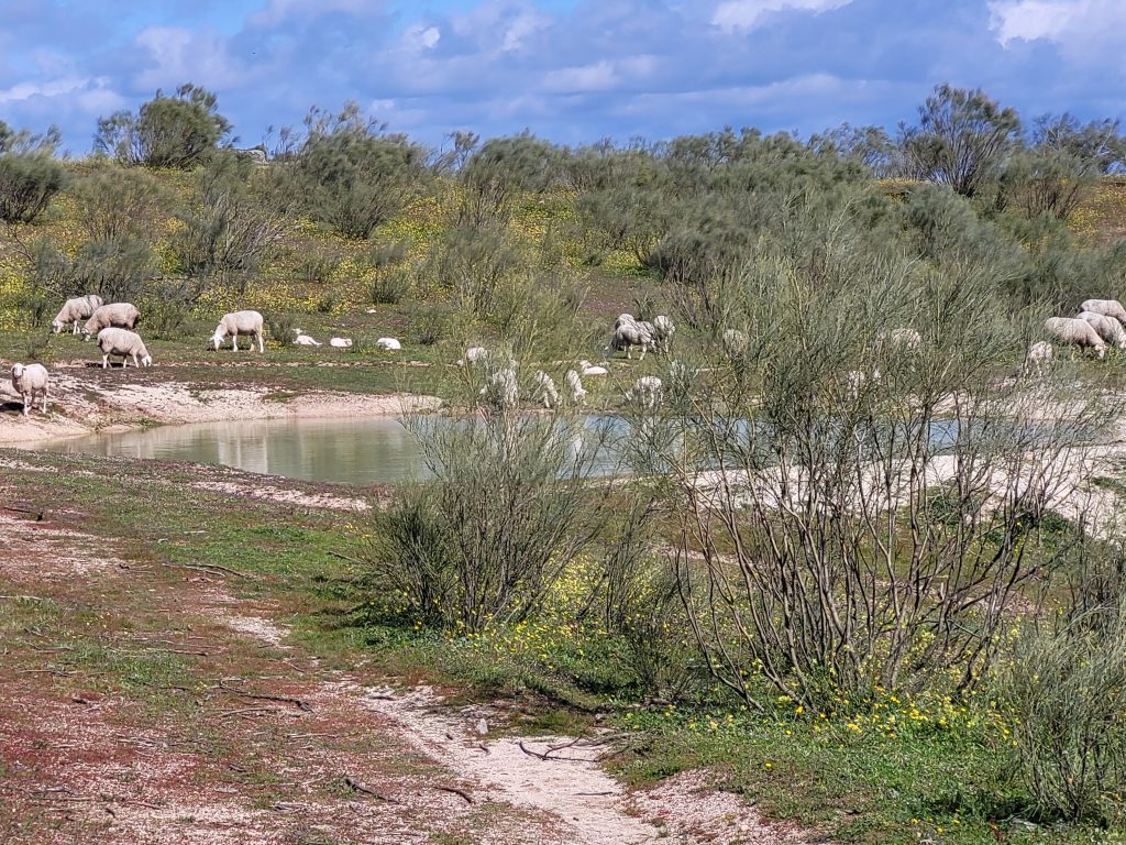 Außer ein paar landwirtschaftlichen Fahrzeugen und zwei anderen Pilgern habe ich keinen einzigen Menschen getroffen. Dafür aber Schafe, Kühe und einige Geier, die hoch am Himmel kreisten.