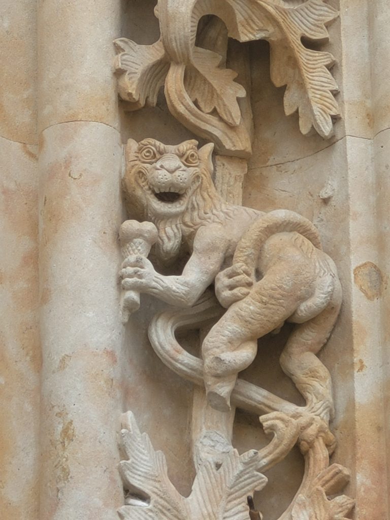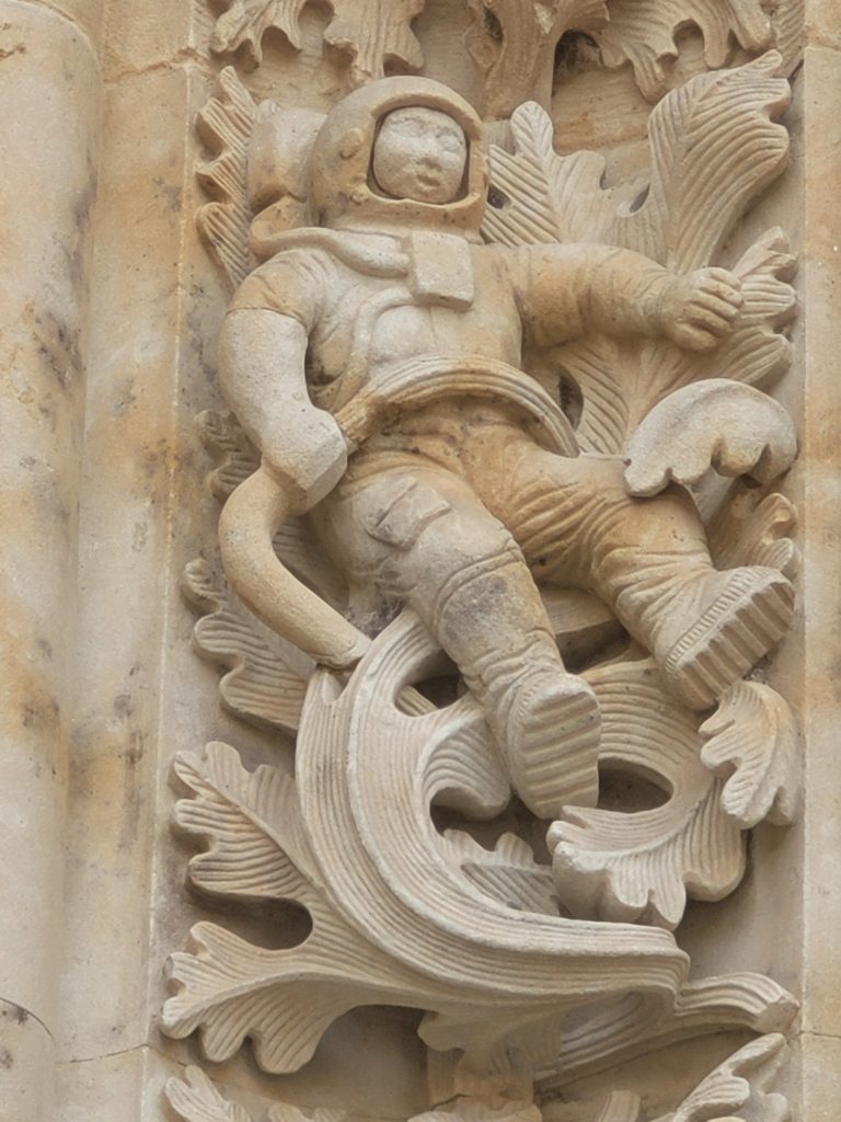 Bei der Restaurierung der Nordfassade der Kathedrale 1992 verewigte sich der Steinmetz Miguel Romero mit der Darstellung eines Astronauten und eines eisschleckenden Drachens: