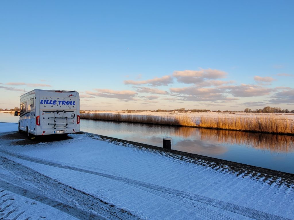 Unser erster Stopp führte uns in die Nähe von LEER in Ostfriesland, und der Winter zeigte sich noch einmal in aller Pracht.