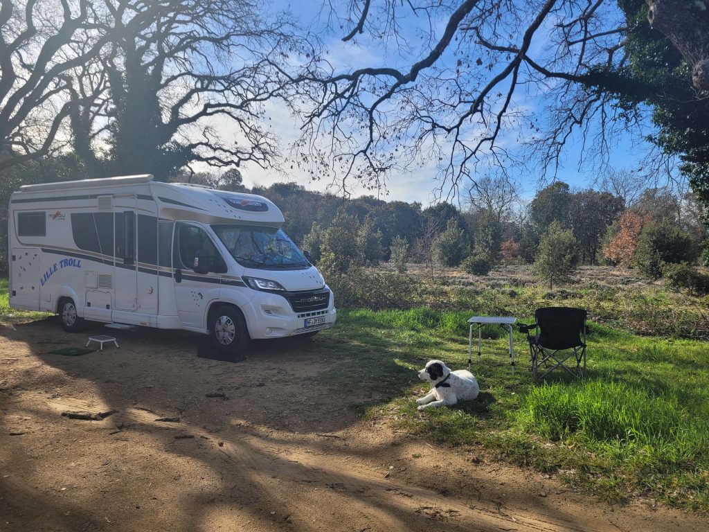 Leider sind die Übernachtungsmöglichkeiten für ein Wohnmobil nicht mehr so frei wie in der Vergangenheit. Aber wir haben trotzdem einen idyllischen Parkplatz in einem Eichenwald gefunden.