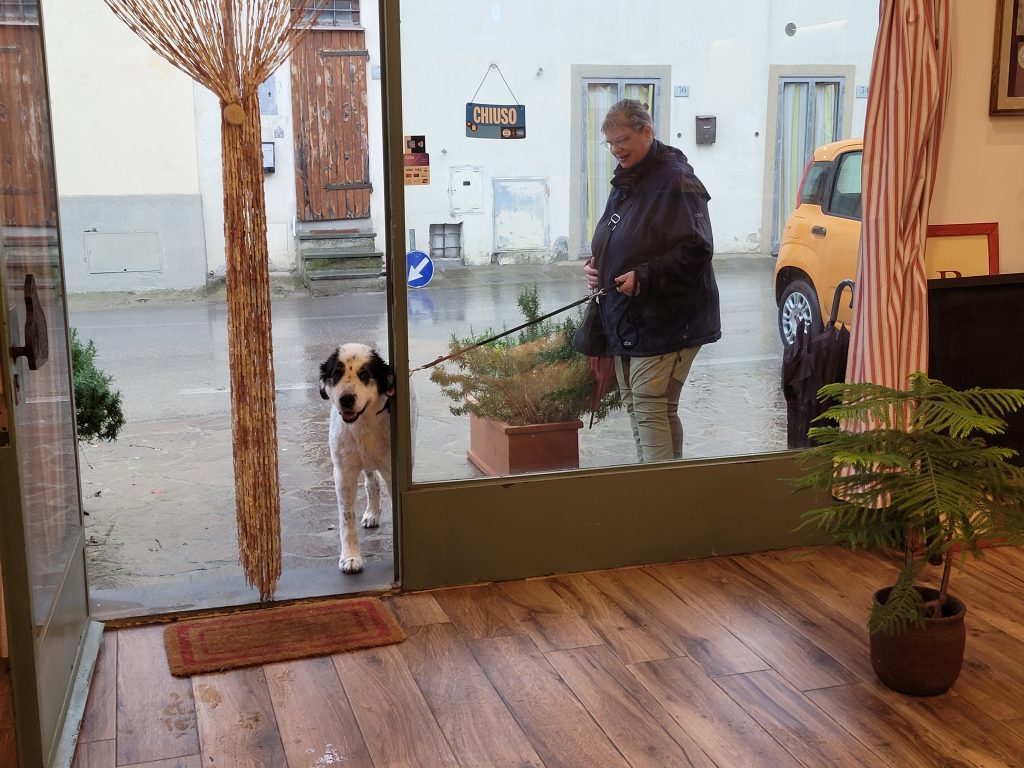 Gestern mussten wir eine Schlechtwetterfront aussitzen mit Stark- und Dauerregen, zeitweise befanden wir uns inmitten einer Wolke. Unsere Aktivitäten beschränkten sich auf den Einkauf bei unserem Lieblingsmetzger, der das weltbeste Carpaccio zubereitet.