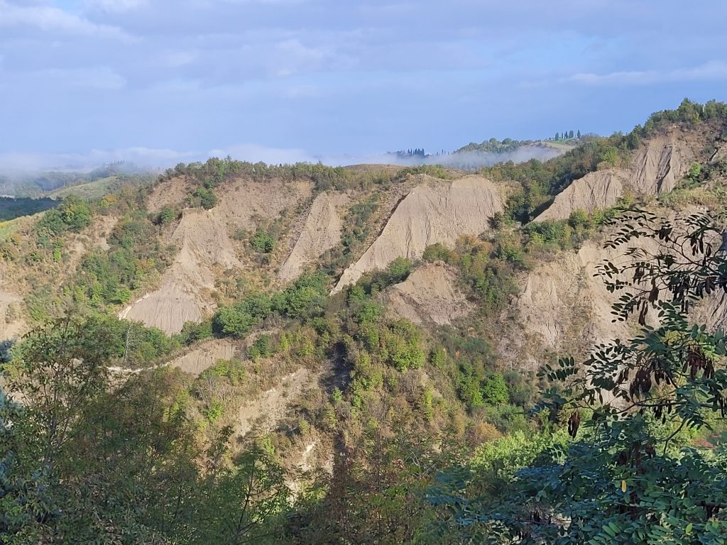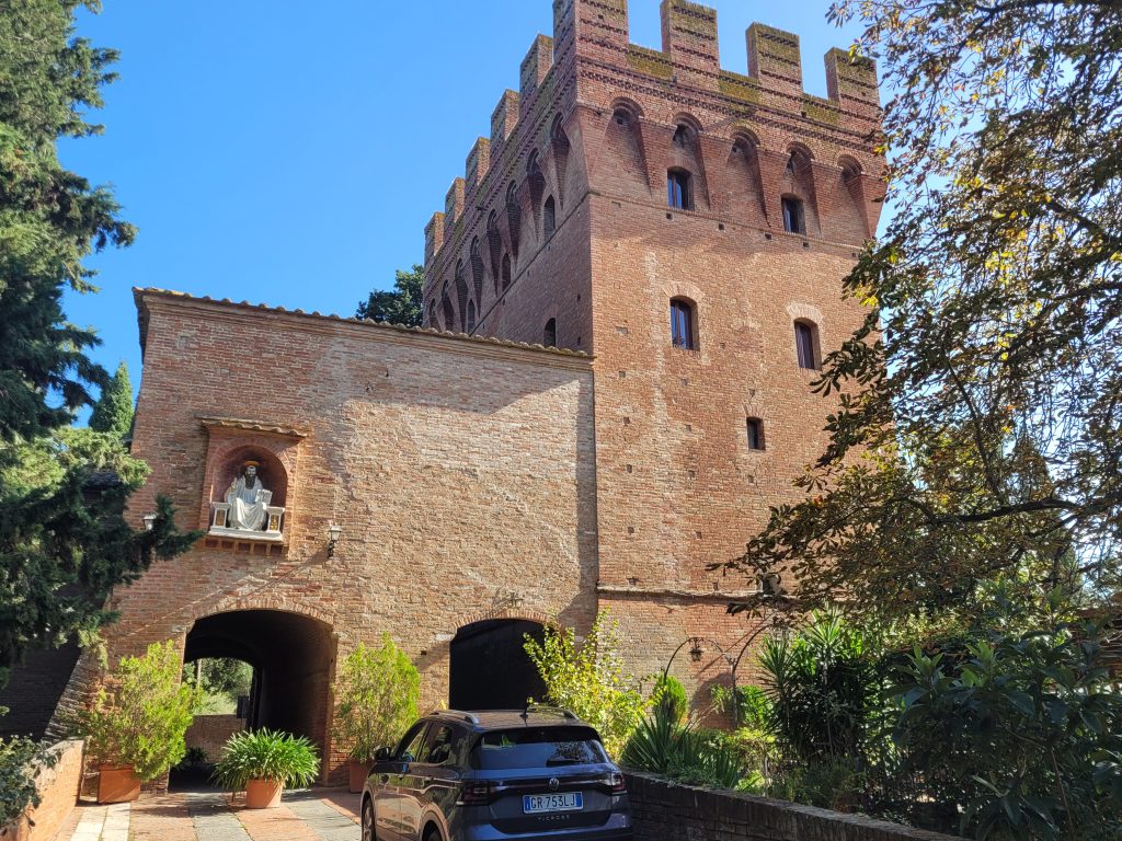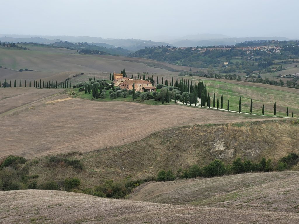 Übrigens: wir befinden uns hier nicht mehr im CHIANTI-Gebiet, sondern in der CRETE SENESI. Könnt Ihr Euch noch an Euren Wassermalkasten aus der Schulzeit erinnern: die Farbe der umgepflügten Äcker dieser Gegend hat den Begriff „SIENA-BRAUN“ geprägt.