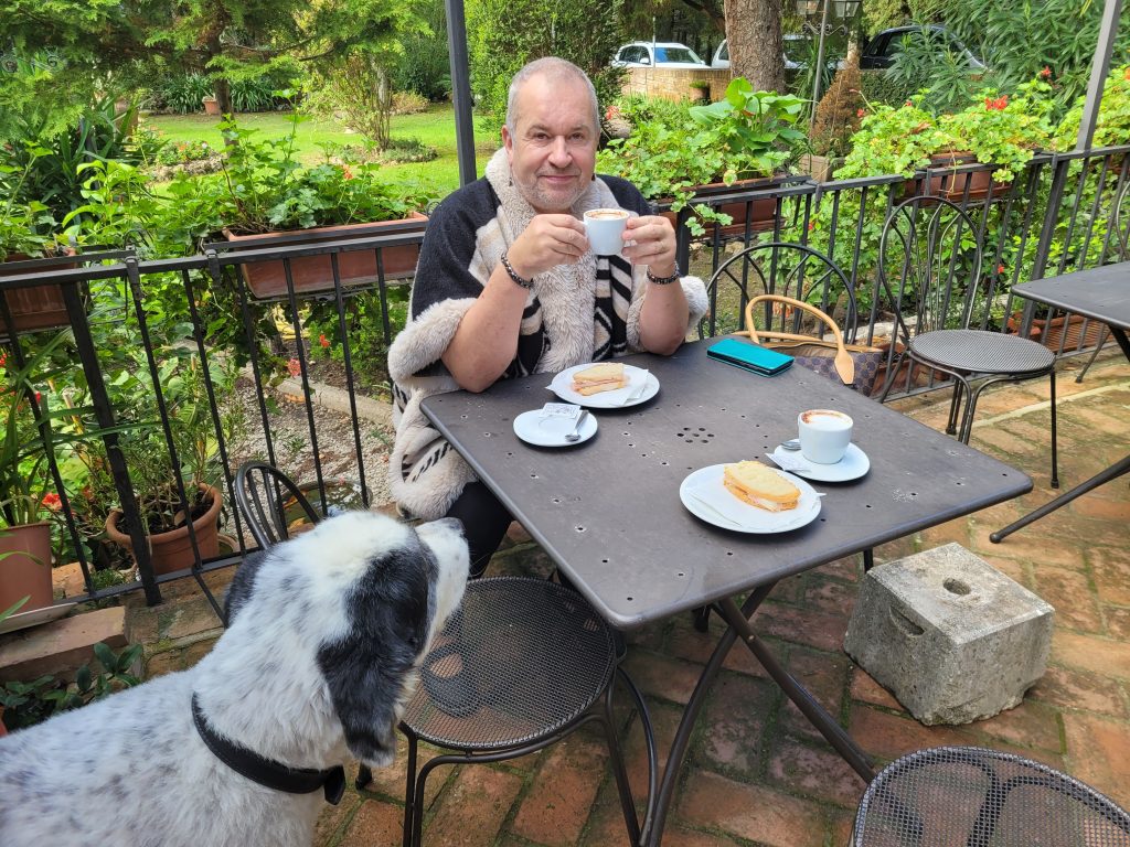 Schon seit über 20 Jahren frühstücken wir traditionell in der Bar des Klosters, die im trutzigen Eingangsturm zur Abbazia liegt: