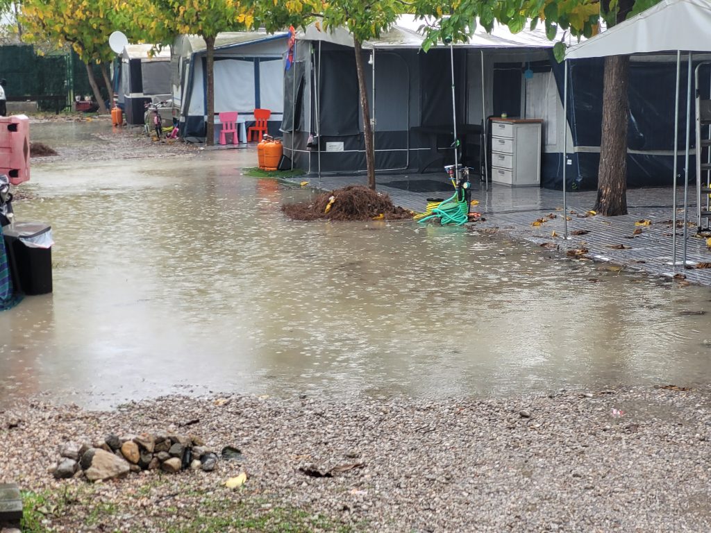 Heute Morgen setzte heftiger Gewitterregen ein. Als nach bereits einer Stunde das Wasser in die ersten Zelte floss und aus den Gullys Fontänen emporschossen, haben wir fluchtartig den Campingplatz verlassen.