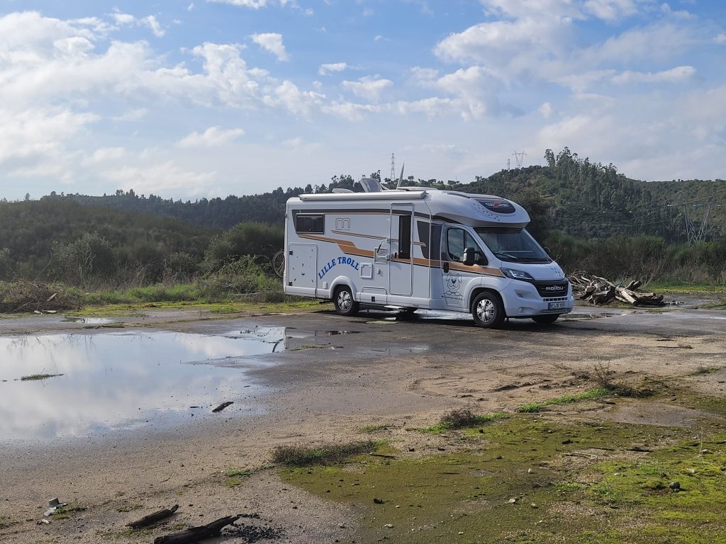 Eigentlich wollten wir heute bis Lissabon kommen. Aber nach unzähligen Kurven, Tunnel und Bergüberquerungen haben wir auf halber Strecke beschlossen, hoch über dem TEJO einen Rastplatz für die Nacht zu suchen.