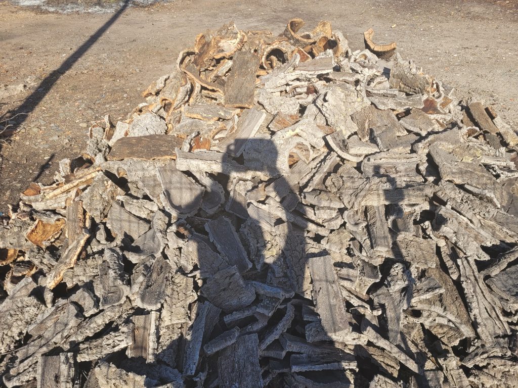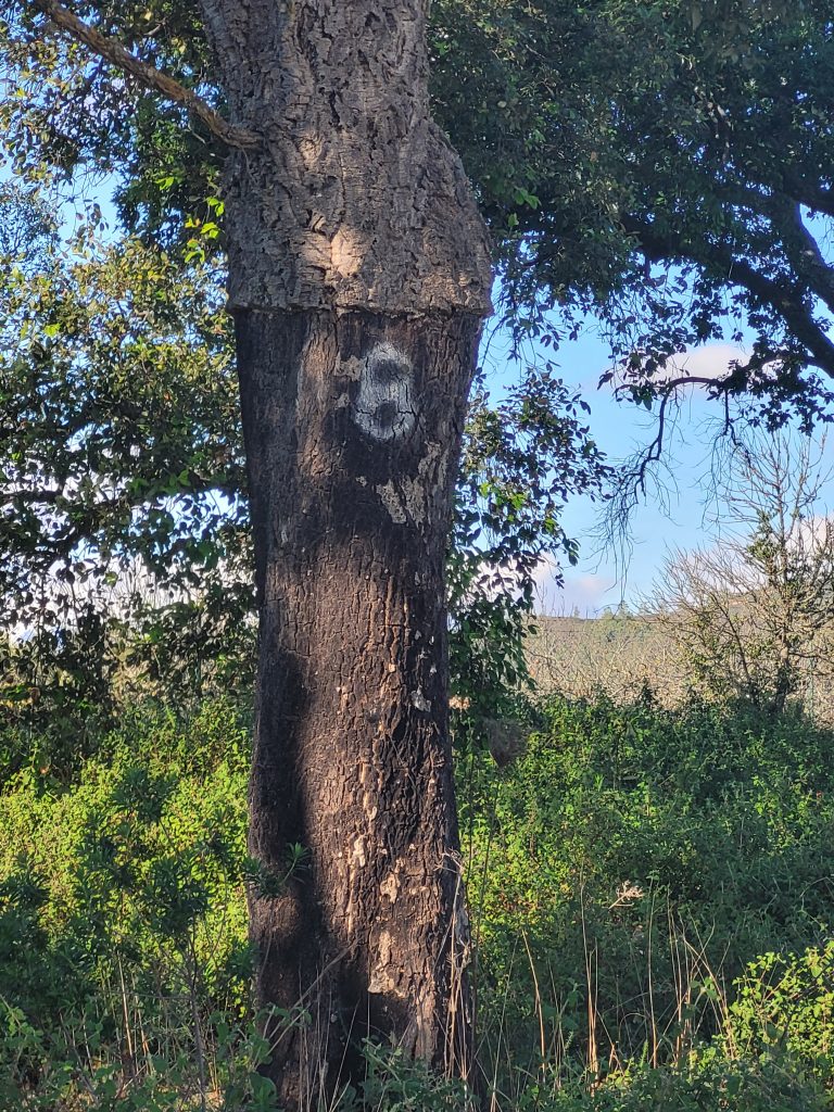 Wie fast überall in Portugal sind wir auch auf Korkeichen gestoßen. Aus der Rinde wird echter Kork gewonnen, verwendet zumeist für Champagner- und Wein-Korken: