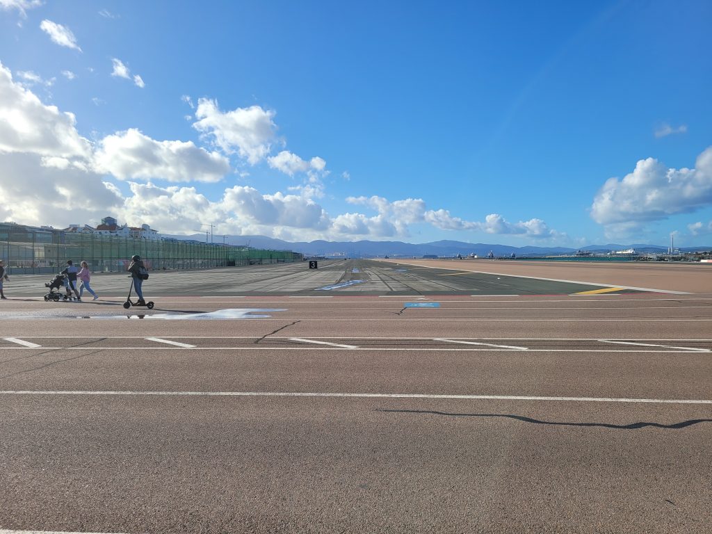 Der Abstieg von den Felsen, der Weg durch die Stadt zurück an die Grenze war extrem anstrengend. Faszinierend dabei: sofern sich kein Flugzeug im An- oder Abflug befindet, muss man über das Flugfeld gehen: