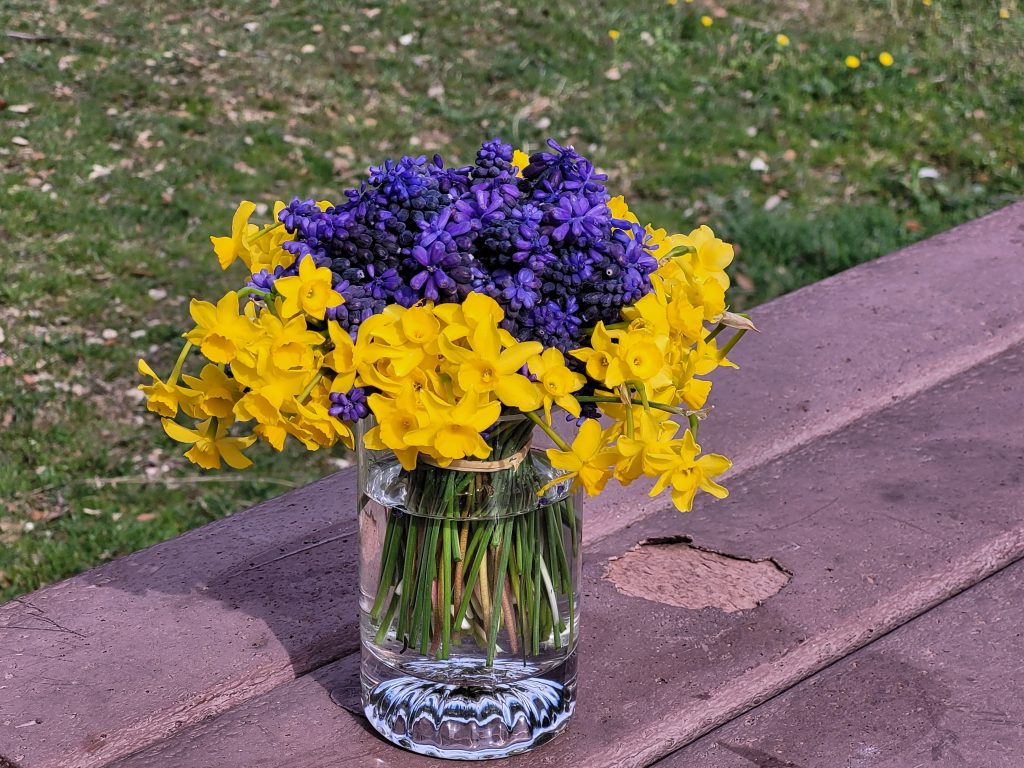 Auf einem Spaziergang rund um unseren Übernachtungsplatz haben wir sie entdeckt: Viele wilde (!) Narzissen, durchsetzt von unzähligen Perlhyazinthen. Schöner kann Frühling nicht sein!