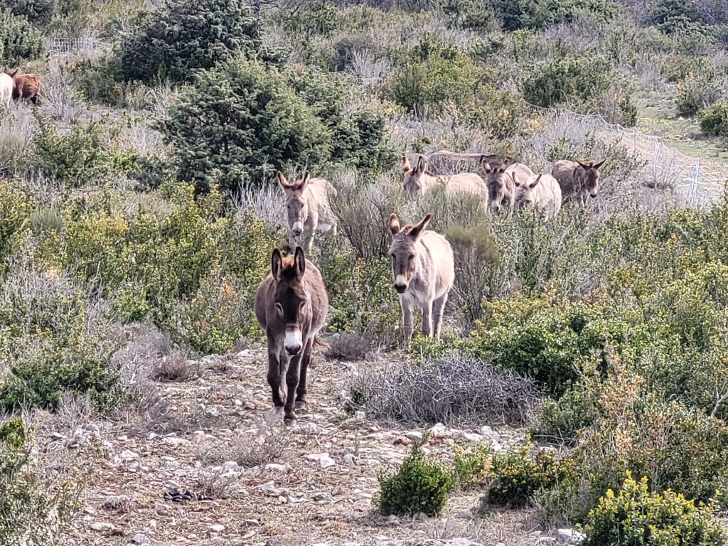 Und dann trafen wir auf einige Störer unserer Nachtruhe: Eine kleine Herde von Eseln, die sich als sehr zutraulich herausstellten.