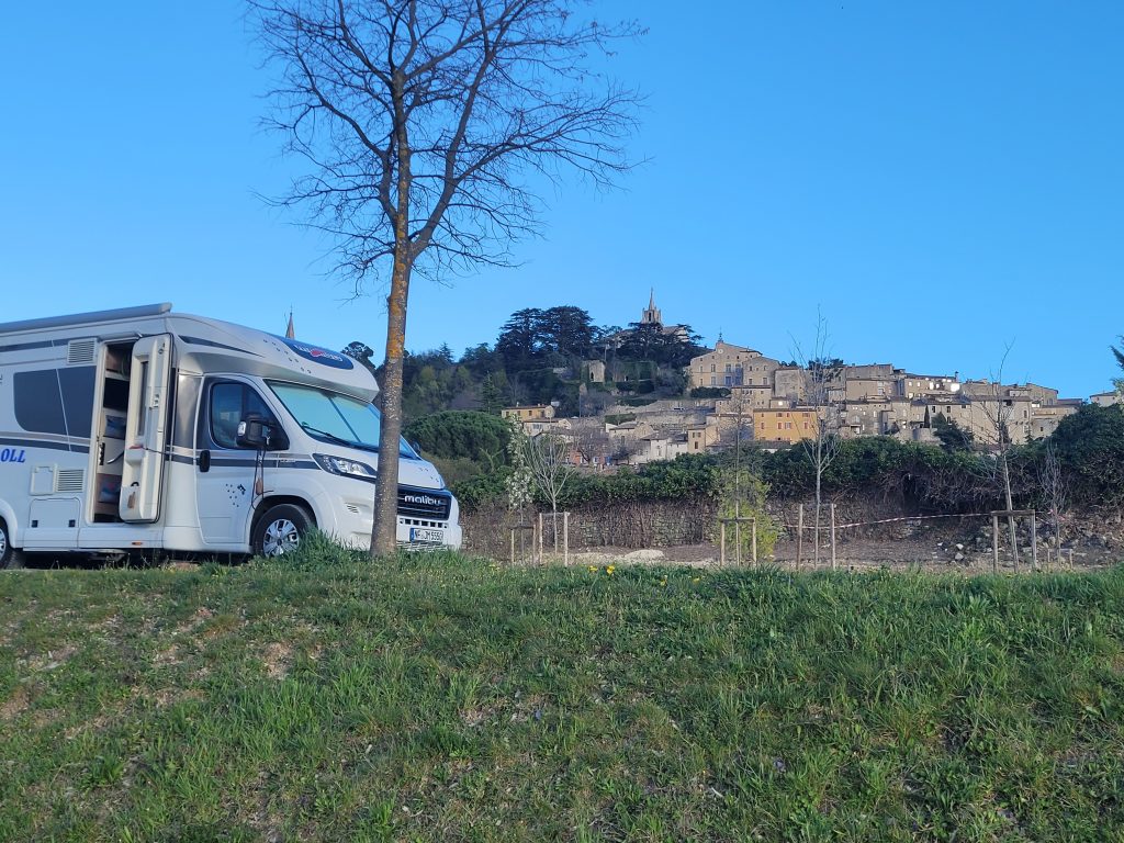Jetzt verbringen wir die Nacht am Rand eines Fußballplatzes in dem Dorf BONNIEUX.