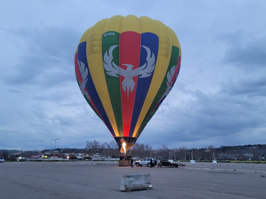 Als dann nach einigen Stunden etwas Schlaf möglich war, wurden wir vom Röhren eines Heißluftbrenners geweckt: keine 50 Meter entfernt wurde ein Ballon vorbereitet.