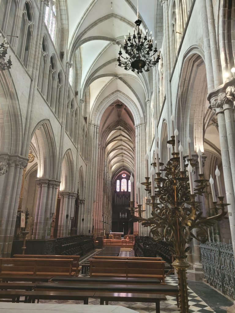 Hier haben wir eine richtige „Perle“ der BRETAGNE entdeckt (die wir merkwürdigerweise bisher immer „übersehen“ hatten). DOL-DE-BRETAGNE hat heute nur 5.800 Einwohner, war einmal die Hauptstadt der BRETAGNE, und soll im 6. Jahrhundert vom HL. SAMSON (dem „Drachentöter“) gegründet worden sein. Daher auch die prächtige Kathedrale (die für ein „Dorf“ mit 5.700 Einwohner reichlich „überkandidelt“ erscheint):