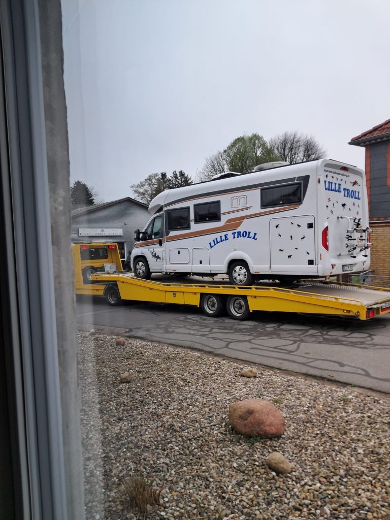Aber gestern auf der Rückfahrt von HVIDE SANDE ist es dann passiert: das Getriebe hat seinen Geist aufgegeben. Immerhin haben wir es mit Tempo 70 noch bis nach Pahlen geschleppt. Von hier ging es auf Anweisung von FIAT nur noch mit dem Abschleppwagen weiter in die Werkstatt.