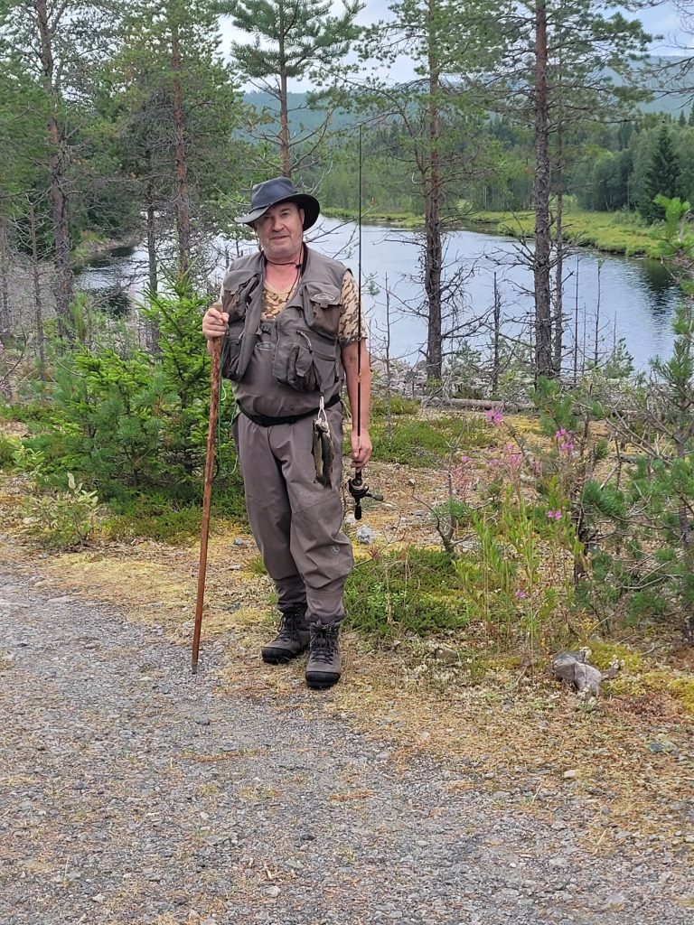 Auf unserem letzten Stellplatz am LJUSNAN habe ich übrigens eine anstrengende Angeltour unternommen und mit zwei kleinen Gebirgsforellen (25 cm) ein bisschen Erfolg gehabt: