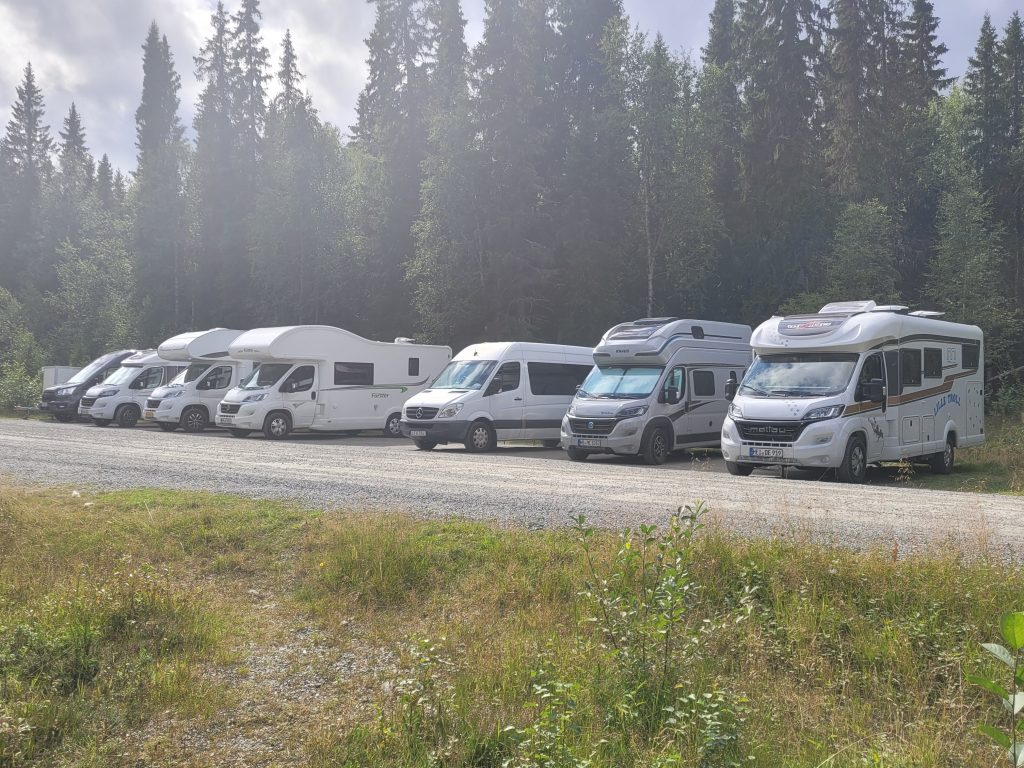 Dafür haben sich die Wohnmobile vermehrt: früher hatten wir diesen einsamen Waldparkplatz oft für uns alleine, jetzt sieht er mittags so aus: