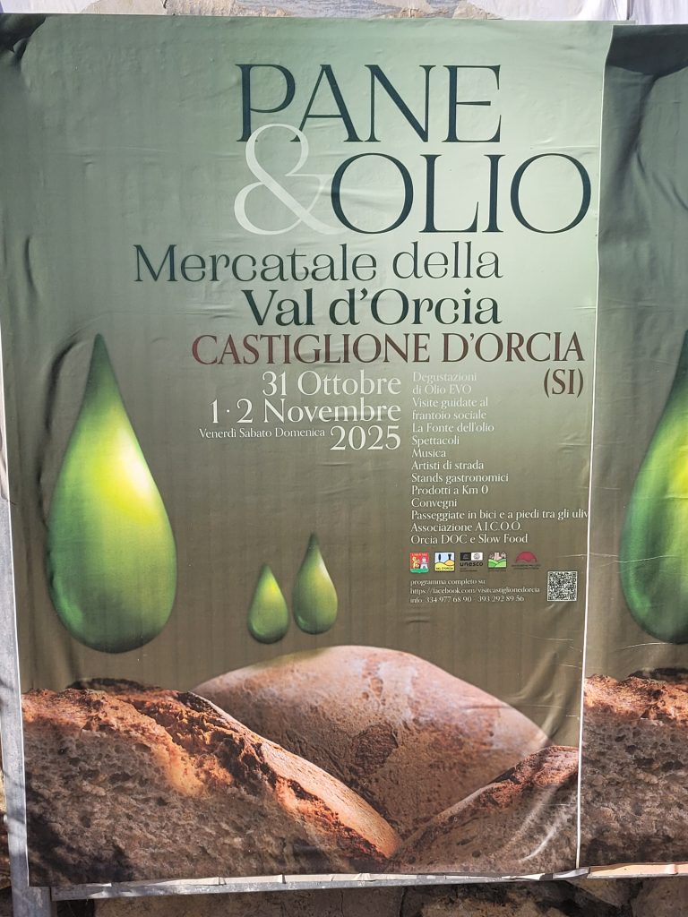 An jeder Ecke wird einem frisches Olivenöl auf Brot zum Verkosten angeboten (wir sind scheinbar Banausen und Kostverächter: die hochpreisigen Öle schmecken uns nicht, sind uns zu „bitter„).