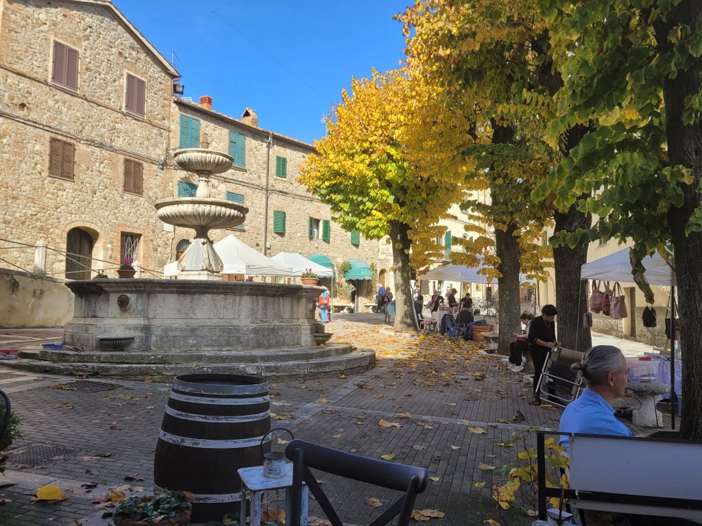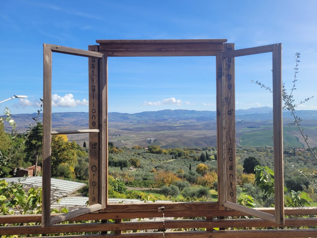 Dafür gefällt uns die kleine Gemeinde mit 2.090 Einwohnern und dem super Blick auf das Tal des FIUME ORCIA sehr: