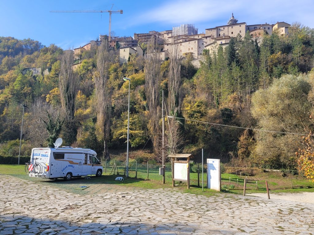 Seit gestern durchqueren wir die SIBELLINISCHEN BERGE – steile Auf- und Abfahrten, viele und enge Kurven, enge Straßen. Aber auch spektakuläre Ausblicke. Und immer der etwas ängstliche Blick auf die Wetteraussichten: hier kann es schon jetzt Schneefälle geben (und wir haben keine Schneeketten an Bord).