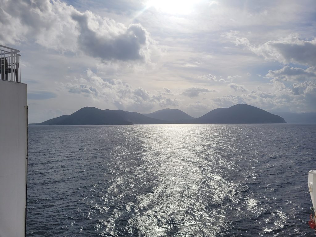 Mittags passierten wir die IONISCHEN INSEL, die ich als 16-Jähriger durchwandert habe (meine erste Reise ohne Eltern). Besonders ITHAKA, die Insel von ODYSSEUS hat es mir – damals wie heute – sehr angetan (was 5 Jahre Altgriechisch bewirken können):
