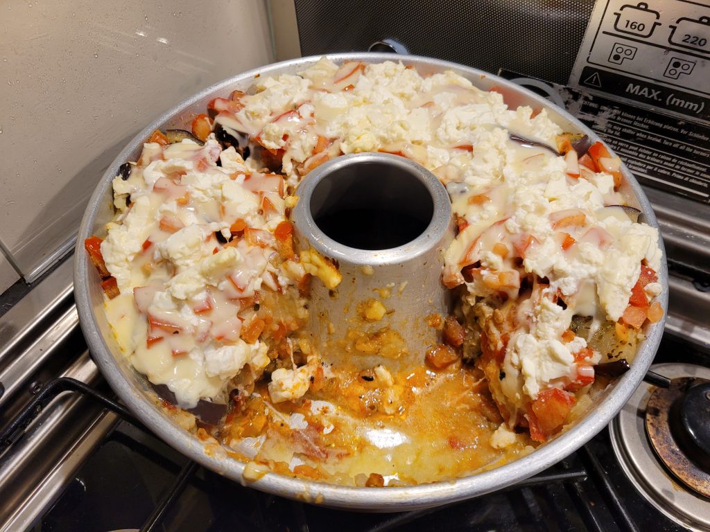 Was herauskam, war äußerst lecker. Hatte aber mit einem MOUSAKA-Gericht, wie wir es vom Restaurant kennen nicht soviel gemeinsam: der Campingofen ersetzt scheinbar doch nicht eine Auflaufform und einen Backofen.
