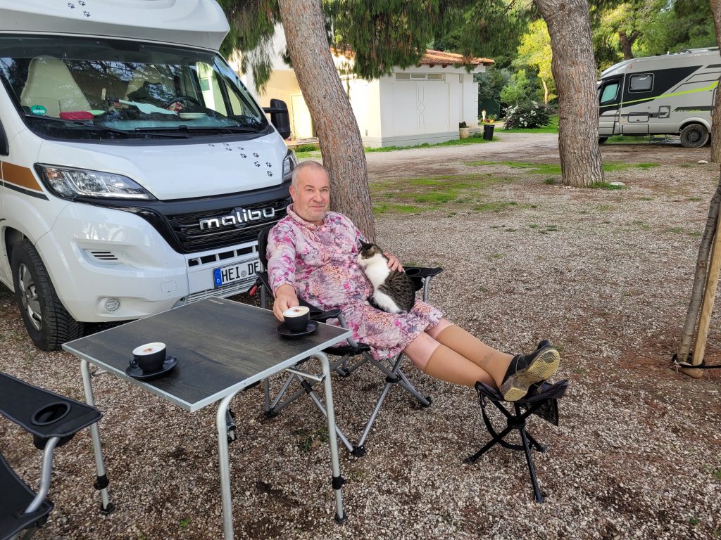 Es gibt auf dem Campingplatz etliche Katzen, und THORA jagt sie natürlich, wann immer sie kann. Gestern hat sich aber eine zum Kampf gestellt und THORA „einen übergebraten“. Seitdem ist unser Hund deutlich vorsichtiger geworden und hält Abstand.