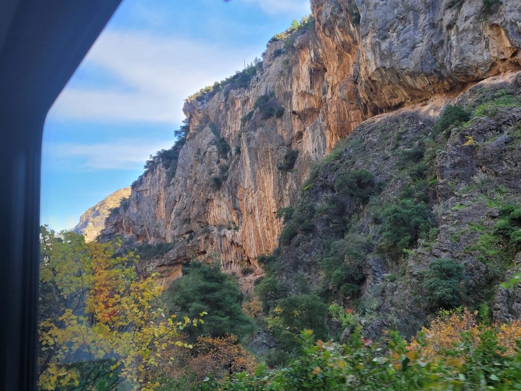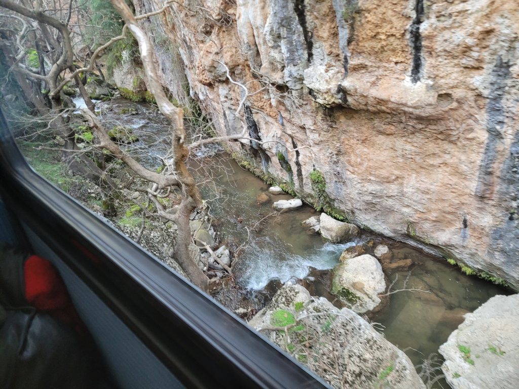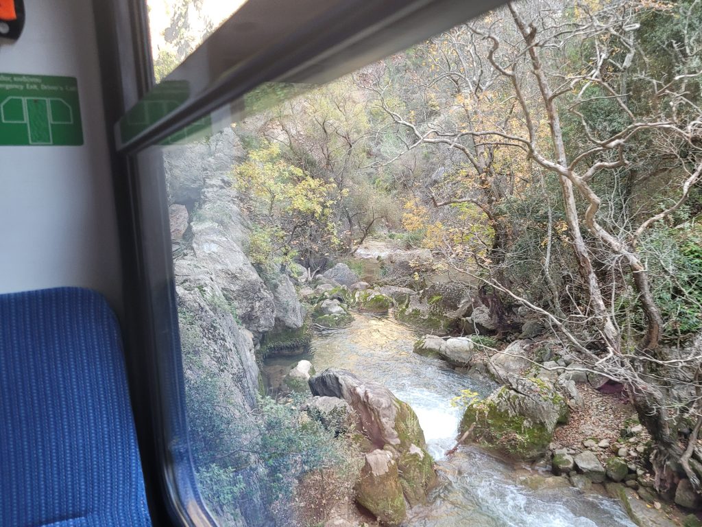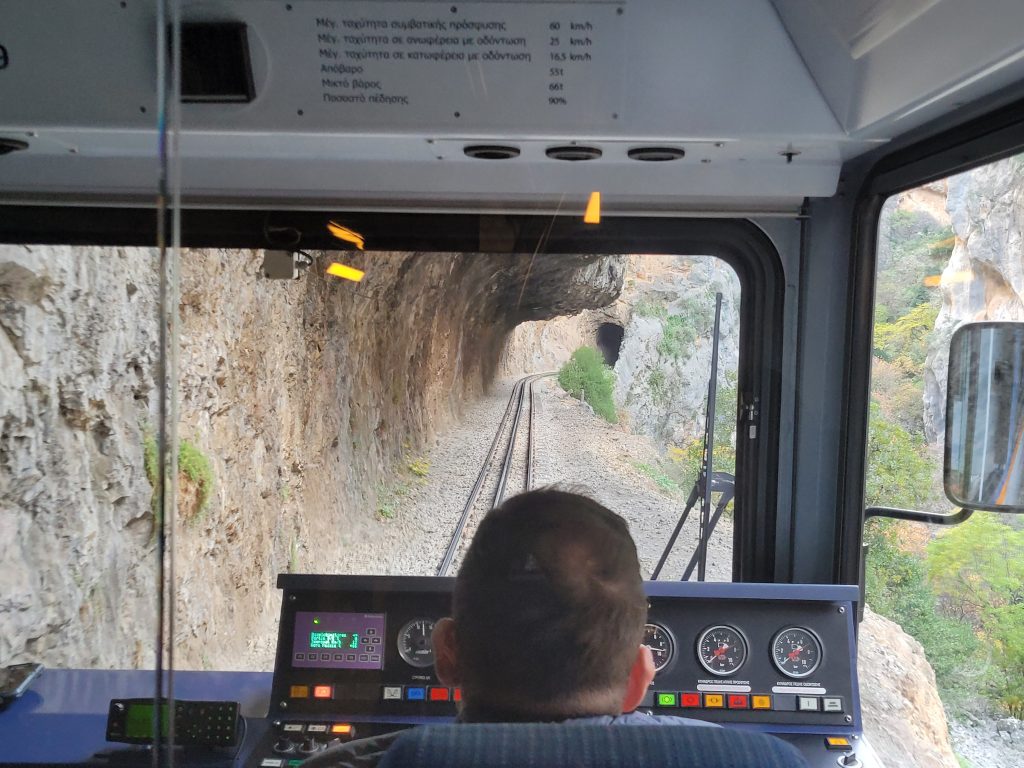 Heute hat sie eher touristische Bedeutung. Die Fahrt über 40 Stahl- und 15 Steinbrücken, durch unzählige Tunnel, immer entlang oder über dem Fluss VOURAIKIS ist spektakulär: