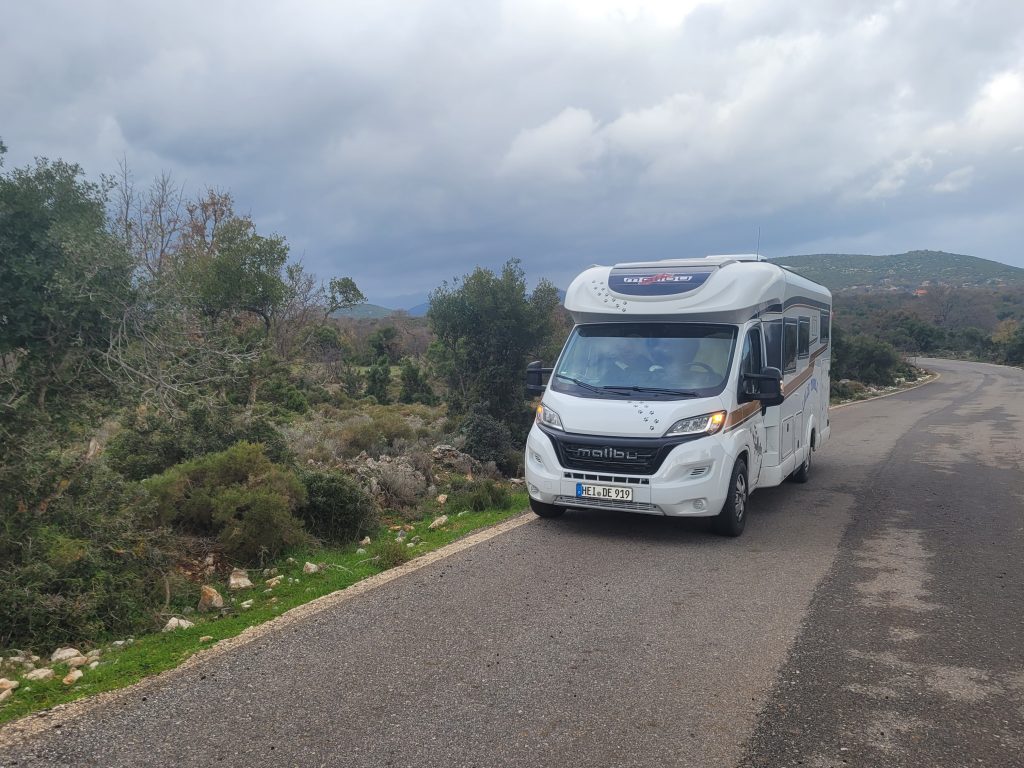 Heute haben wir die abenteuerlichste Bergfahrt unseres Lebens gemacht. Auf dem Weg nach MONEMVASIA mussten wir die Bergstraßen durch LAKONIEN (Hauptstadt: SPARTA) nehmen. Hinauf auf über 1.500 Höhenmeter, (meist) enge steile Straßen, unzählige „Haarnadel“-Kurven, wie das Navi-Bild ausschnittsweise zeigt: