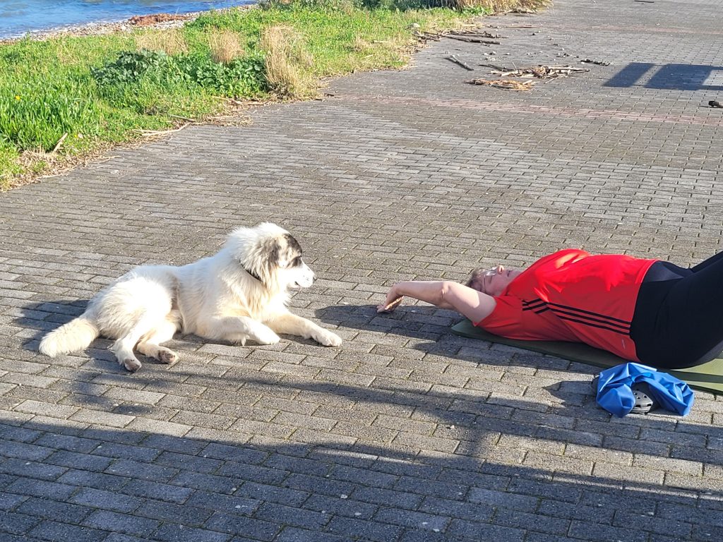 Am Morgen wurden wir schon erwartet von unserem neuen Begleiter, der unser morgendliches Sportprogramm interessiert beobachtete: