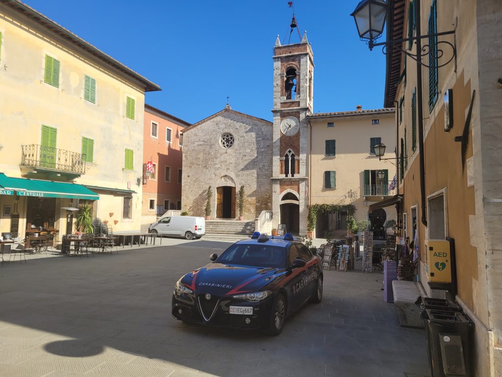Wenn wir den Wetterbericht aus Deutschland hören, haben wir längst noch keine Lust, die TOSKANA zu verlassen. Bei blauem Himmel und 18° in der Sonne vor unserer Bar in SAN QUIRICO zu sitzen, – mit Blick auf den schicken ALPHA ROMEO der Carabinieri …