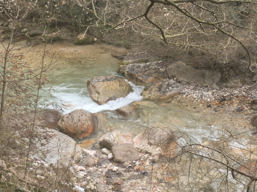 Wir stehen hier gemütlich an einem kleinen Gebirgsbach (aus dem ich früher schon einmal Forellen geangelt habe).