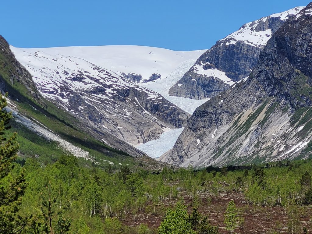 Dabei hat Norwegen gerade erst so richtig angefangen: Wir sind angekommen im JOSTEDALSBREEN-Gebiet, dem größten Gletscher auf europäischem Festland. An einige der Gletscherzungen kommt man sehr nah heran. Da wir hier schon 2002 und 2005 waren, sind wir erschrocken, wie weit das Eis sich mittlerweile zurückgezogen hat.