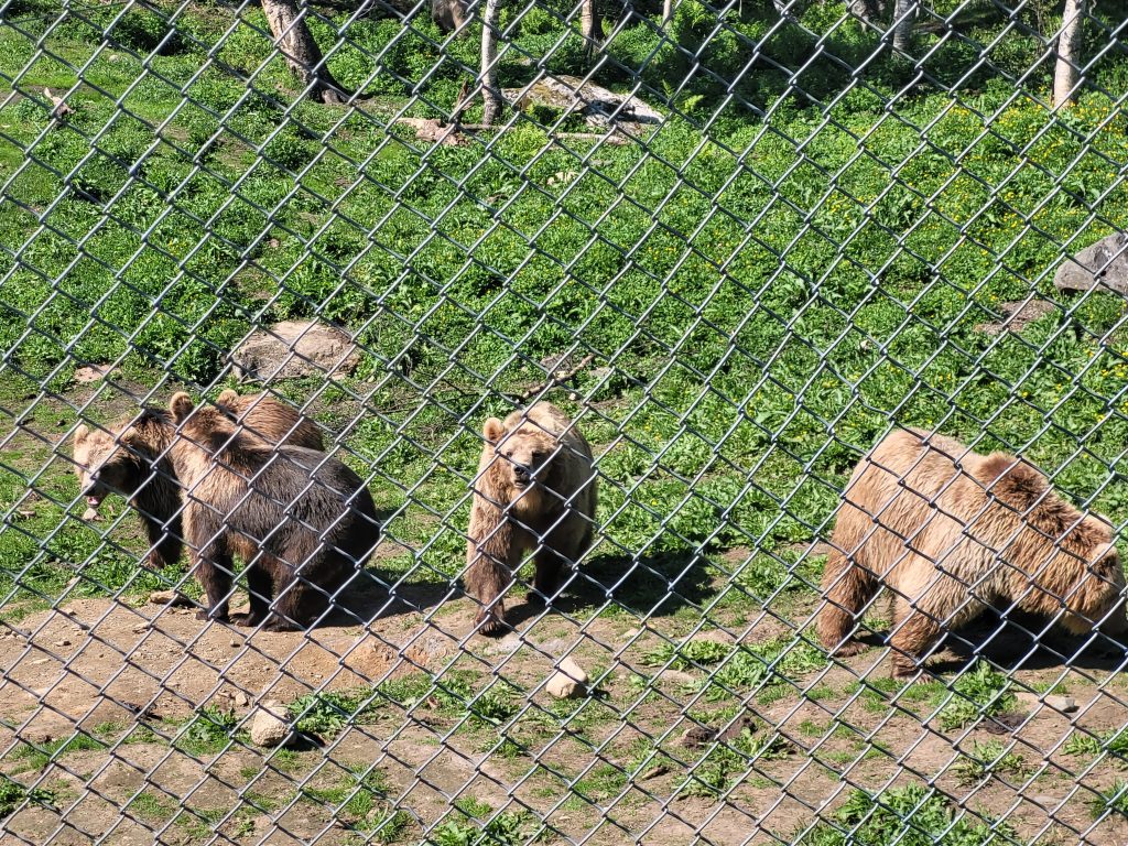 Braunbären, meist eher in Schweden zuhause. Im letzten Jahr hatten wir das RIESENGLÜCK, einen freilebenden vom WoMo aus zu sehen. Diese Raubtiere töten auch Menschen, aber aus dem Merkblatt der schwedischen Forstbehörde, wie man sich denn bei einer Begegnung in freier Wildbahn verhalten soll, sind wir nicht schlau geworden: Nicht näherkommen, aber auch nicht weglaufen. Sich groß machen, aber auch wieder nicht bedrohlich auf den Bären wirken. Laut rufen, aber auch nicht den Bären erschrecken …