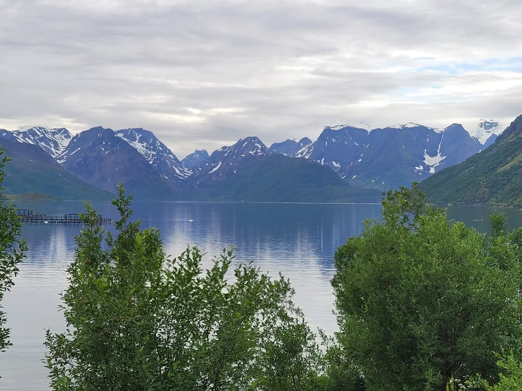 Seit gestern stehen wir am OKSFJORD mit Blick auf eine Lachs-„Farm“ und den OKSFJORDBRE – der einzige Gletscher Norwegens, der direkt ins Meer „kalbt“. Zum Glück haben wir ausreichend Empfang, daher kann ich diesen Beitrag heute schreiben.