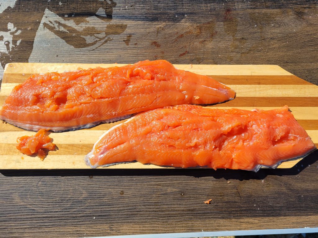 Dire letzten Tage haben wir an unserem Lachs-Fjord verbracht, da wir auf die Öffnung der Propangas-Tankstelle am Montag warten mussten (und natürlich auf einen weiteren Lachs gehofft haben). Außerdem haben wir unseren Lachs filetiert und zu GRAVED LACHS verarbeitet.