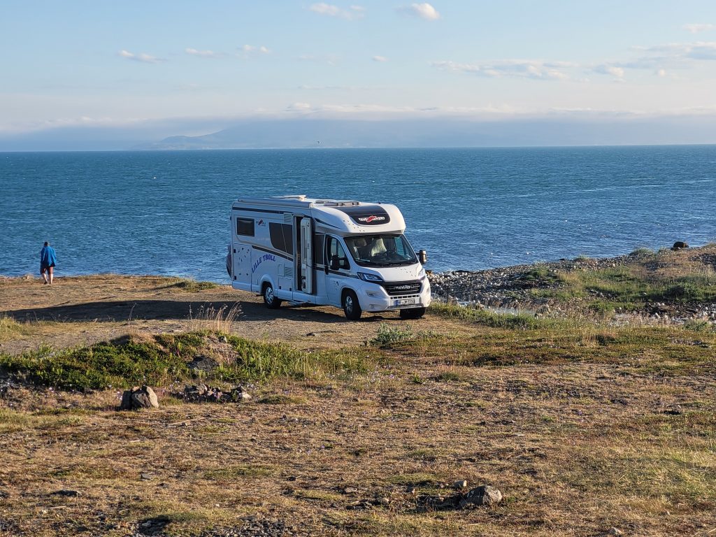 Als wir dann am Nachmittag einen Stellplatz über einem Fjord gefunden haben, haben wir zu spät einen ungewöhnlichen „Nachbarn“ fünf Meter neben dem WoMo bemerkt:
