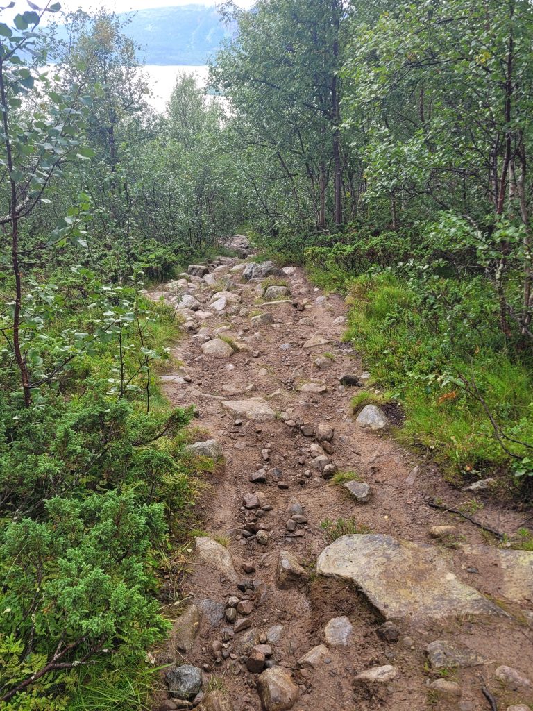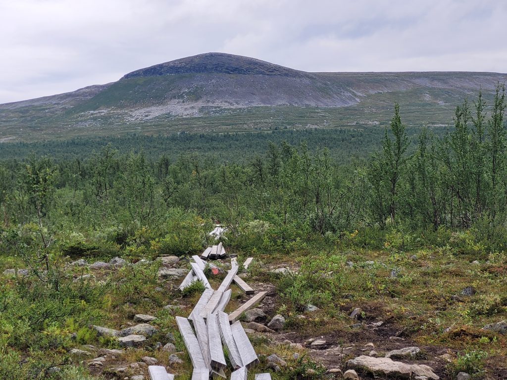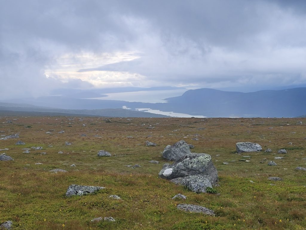 Oben angekommen, empfängt mich ein angenehmes Hochfjäll mit Rentieren. Nur der Abstieg zur AKTSESTUGAN ist heftig (und nicht gut für mein Knie).