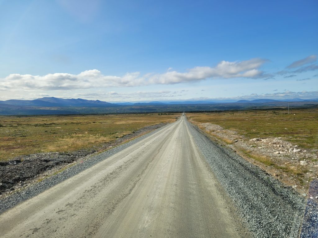 Hier, an dieser Stelle, hatten wir vor einem Jahr unerwartet eine sehr, sehr seltene Begegnung: vor uns überquerte ein wilder Braunbär die Straße. Wir waren so perplex, dass wir damals nicht mal ein Foto machen konnten.