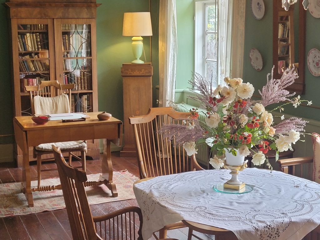 Karen war eine bekennende Blumen-„Fanatikerin“: sie entwarf verschiedene Blumen-Ensembles, die – je nach Jahreszeit – in ihrem Garten wuchsen und jedes Jahr erneut in derselben Anordnung frisch im Haus aufgestellt wurden.