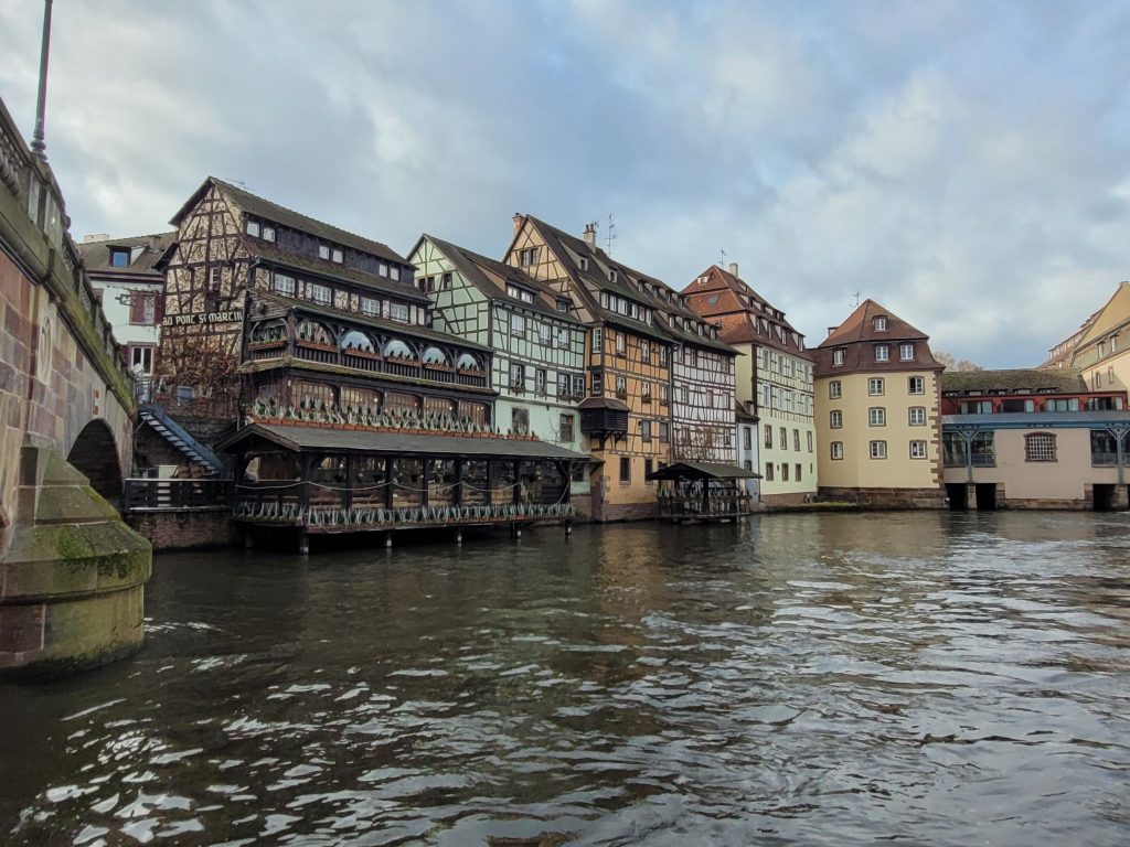 In der Innenstadt dürfen wir nicht mehr aus der Straßenbahn aussteigen. Am Stadtrand wird jeder Besucher einzeln durchsucht und kontrolliert, die Polizei ist mit Maschinenpistolen und Schusswesten ausgerüstet, und Militär patrouilliert in Zugstärke mit Stahlhelm, Kampfanzug und automatischen Waffen über den Weihnachtsmarkt … so sieht der Alltag aus auf Frankreichs berühmtesten Weihnachtsmarkt in STRASBOURG!